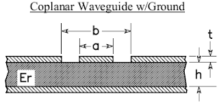 Co-planar Waveguide: This is a circuit trace carrying the RF signals embedded within a ground reference plane on the same layer of the PCB. Co-planar waveguides (CPW) offer lower loss tangent than microstrips do, but have a higher skin effect loss, as fields concentrate on the edges of the trace and ground. Another form of co-planar waveguide is the co-planar waveguide with ground (CPWG), where a ground plane is placed just below the waveguide layer.